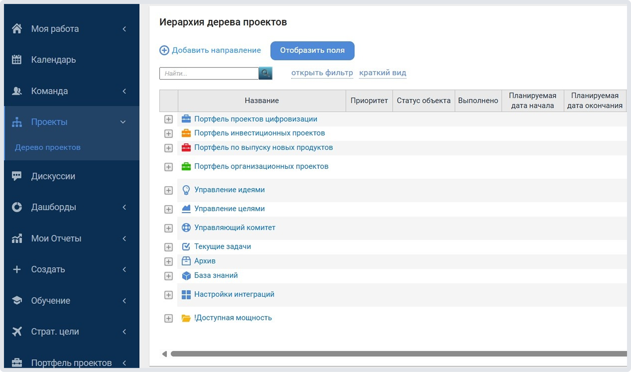 ADVANTA поддерживает любое количество уровней — от портфеля до подзадачи.