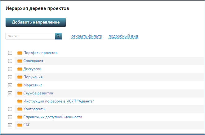 Рис.1. Определены основные типы проектов, организована структура портфеля